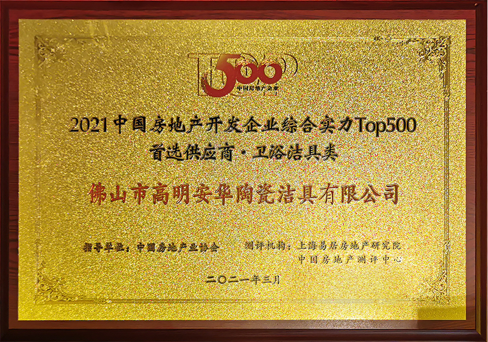 3月16日,在由中国房地产协会、中国易居房地产研究院-中国房地产测评中心主办的“2021年中国房地产top500测评结果发布会暨房地产高峰论坛”上,“中国房地产开发企业top500首选品牌测评研究报告”正式发布,其中安华卫浴以强大的品牌影响力与产品竞争力,强势入围供应商品牌500强,荣获首选卫浴洁具品牌十强第7名、以及智能便盖分类品牌第5名。